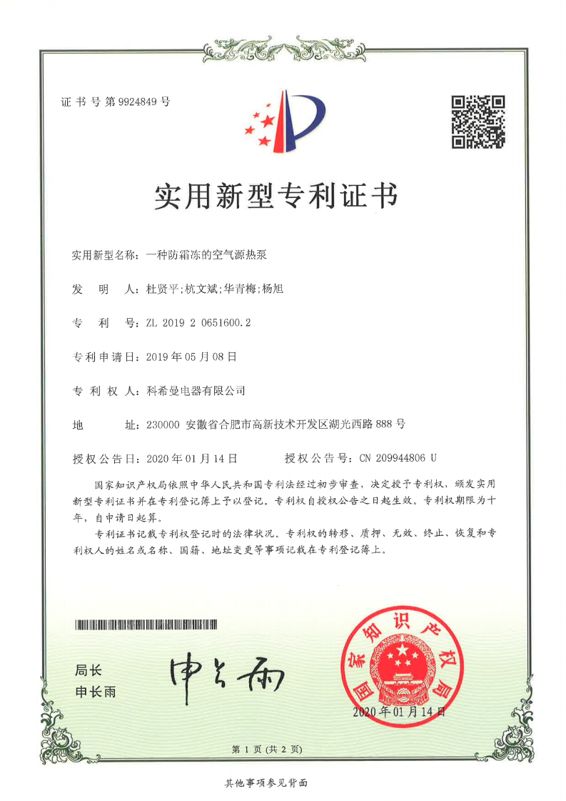 一種防霜凍的空氣源熱泵