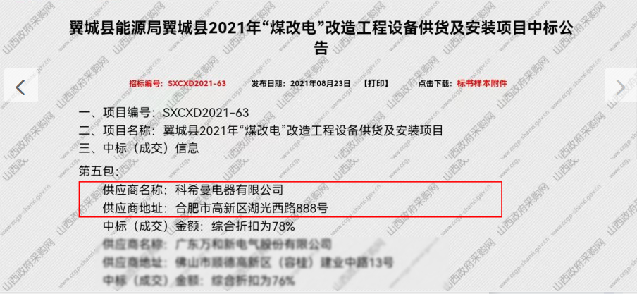 近日,山西省清潔取暖前線傳來中標(biāo)喜訊,科希曼成功中標(biāo)翼城縣2021“煤改電”改造工程設(shè)備供貨及安裝項(xiàng)目,為當(dāng)?shù)鼐用裉峁┛諝饽軣岜卯a(chǎn)品,減少大氣污染,推動(dòng)清潔取暖可持續(xù)發(fā)展。