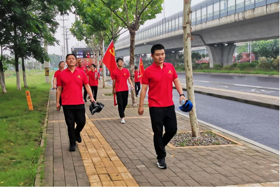 上午六點整,全體黨員懷著無比崇敬的心情在科希曼公司整齊列隊,奏唱國歌,徒步從科希曼公司出發(fā),前往十公里外的蜀山烈士陵園。盡管天空下著小雨,但大家興致不減,一路討論黨員英雄事跡,感受著革命時期的艱苦歷程和崢嶸歲月,學習領(lǐng)悟著長征精神。在徒步過程中,鮮艷的黨旗迎風飄揚、指引前方,全體黨員同志意氣風發(fā)、斗志昂揚,充分展示出科希曼員工良好的精神面貌。