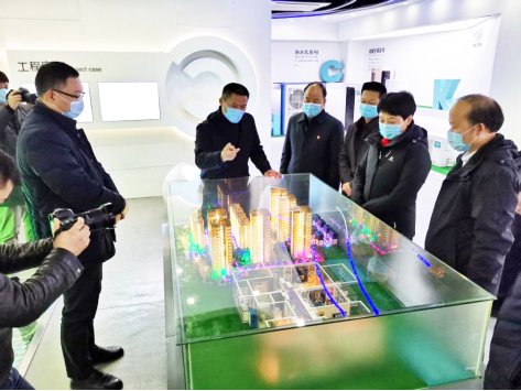 科希曼黨支部書記楊世軍代表科希曼電器有限公司對(duì)到訪領(lǐng)導(dǎo)進(jìn)行了熱情接待。蜀山區(qū)委書記王海霞領(lǐng)導(dǎo)一行參觀了公司展廳。模擬沙盤前楊書記繪聲繪色講解了科希曼空氣源熱泵在馨鉆界小區(qū)的運(yùn)行基本原理與取得的巨大成果,獲得了區(qū)領(lǐng)導(dǎo)們的高度贊許。