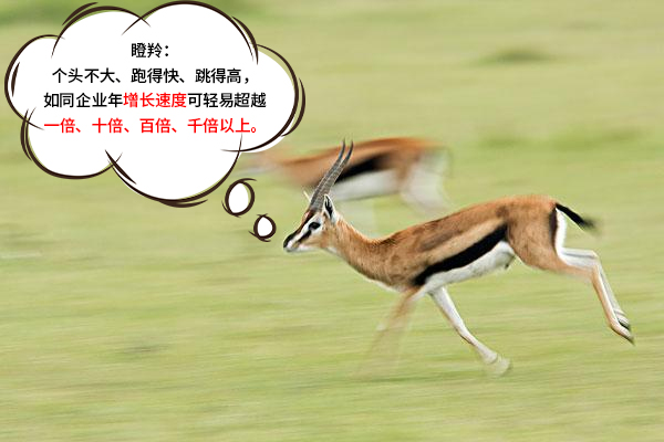 瞪羚”一詞緣自硅谷,“瞪羚企業(yè)”的概念誕生于20世紀(jì)90年代。創(chuàng)業(yè)企業(yè)跨越死亡谷、進(jìn)入快速成長(zhǎng)期被稱為瞪羚企業(yè),也被稱為高成長(zhǎng)企業(yè)。它們具有與“瞪羚”共同的特征——個(gè)頭不大、跑得快、跳得高。這樣的企業(yè),成長(zhǎng)速度快、創(chuàng)新能力強(qiáng)、專業(yè)領(lǐng)域新、發(fā)展?jié)摿Υ???葡B鼘?shí)至名歸!