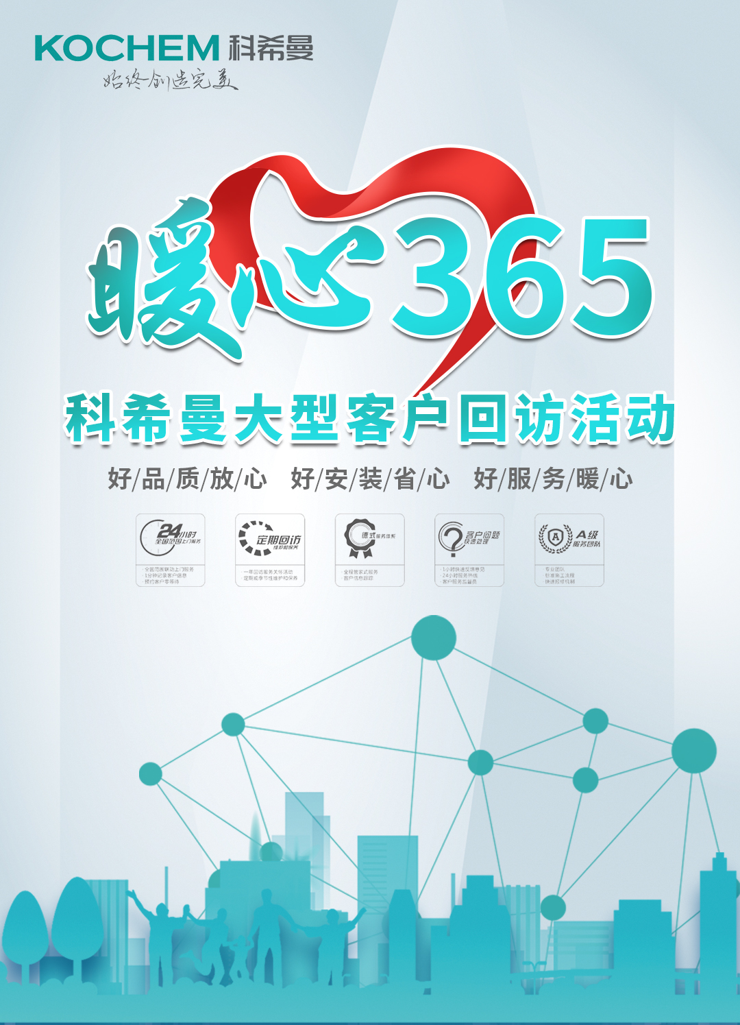 科希曼成立以來,在不斷升級技術(shù)研發(fā)的同時注重打造標(biāo)準(zhǔn)化的完善售后服務(wù)體系,一年兩次的定期回訪維保是售后服務(wù)的重要組成部分。值此金秋十月,即將進(jìn)入采暖需求旺季,科希曼2020年“暖心365” 大型秋冬售后回訪活動即日起正式啟動。