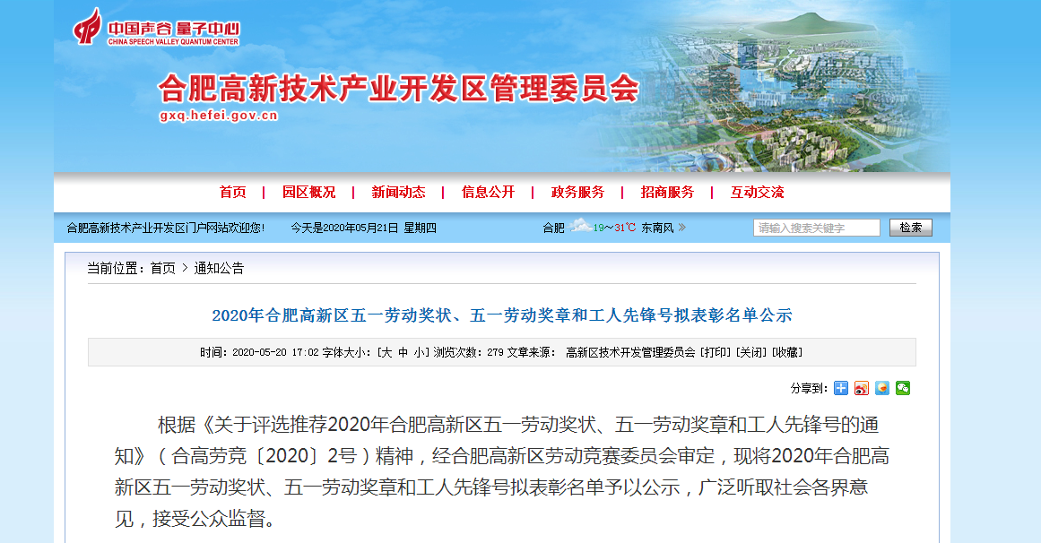 根據(jù)《關(guān)于評選推薦2020年合肥高新區(qū)五一勞動獎狀、五一勞動獎?wù)潞凸と讼蠕h號的通知》(合高勞競〔2020〕2號)精神,經(jīng)合肥高新區(qū)勞動競賽委員會審定,科希曼電器有限公司研發(fā)中心榮獲合肥高新區(qū)工人先鋒號。