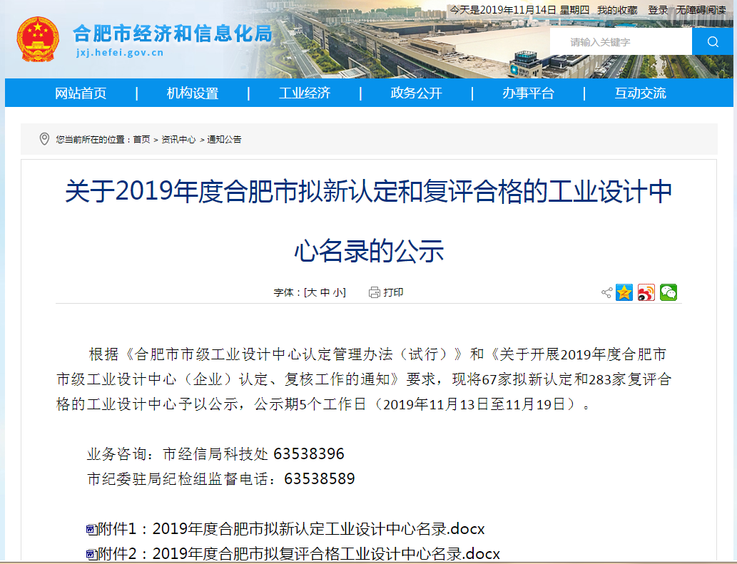 根據(jù)《合肥市市級工業(yè)設(shè)計中心認(rèn)定管理辦法(試行)》和《關(guān)于開展2019年度合肥市市級工業(yè)設(shè)計中心(企業(yè))認(rèn)定、復(fù)核工作的通知》要求,現(xiàn)將67家擬新認(rèn)定和283家復(fù)評合格的工業(yè)設(shè)計中心予以公示,科希曼電器有限公司工業(yè)設(shè)計中心入選復(fù)評合格的工業(yè)設(shè)計中心名單。