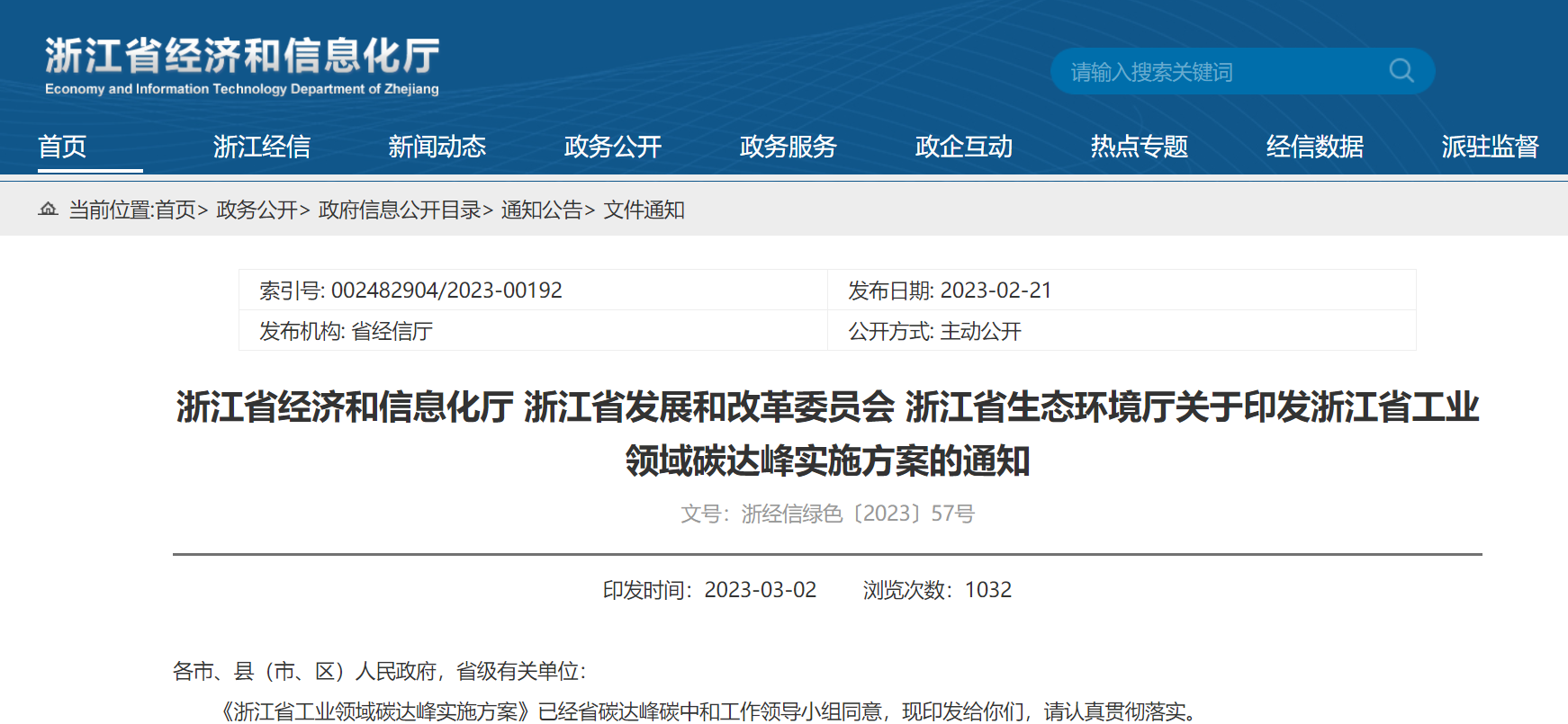 3月2日,浙江省經(jīng)信廳等三部門發(fā)布關(guān)于印發(fā)浙江省工業(yè)領(lǐng)域碳達(dá)峰實(shí)施方案的通知,《方案》明確主要目標(biāo)為,“十四五”期間,產(chǎn)業(yè)結(jié)構(gòu)與用能結(jié)構(gòu)優(yōu)化取得積極進(jìn)展,能源資源利用效率大幅提升,研發(fā)、示范、推廣一批減排效果顯著的低碳零碳負(fù)碳技術(shù)工藝裝備產(chǎn)品,組織實(shí)施節(jié)能降碳技術(shù)改造,筑牢工業(yè)領(lǐng)域碳達(dá)峰基礎(chǔ)。到2025年,規(guī)模以上單位工業(yè)增加值能耗較2020年下降16%以上,力爭(zhēng)下降18%;單位工業(yè)增加值二氧化碳排放下降20%以上(不含國(guó)家單列項(xiàng)目);重點(diǎn)領(lǐng)域達(dá)到能效標(biāo)桿水平產(chǎn)能比例達(dá)到50%;建成500家綠色低碳工廠和50個(gè)綠色低碳工業(yè)園區(qū)。