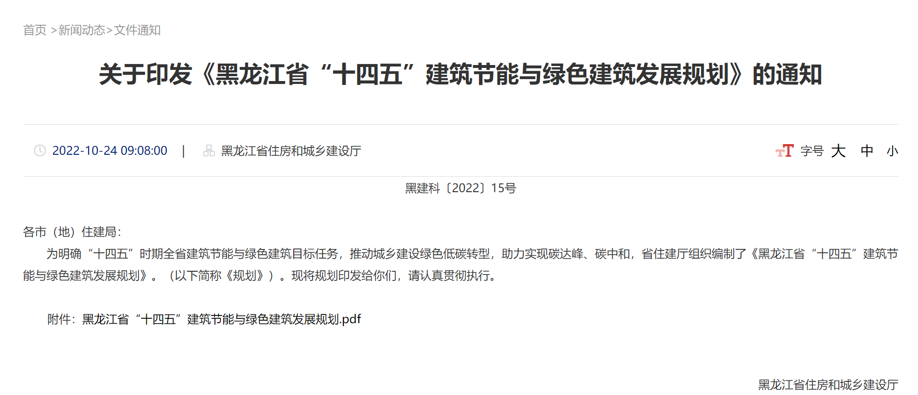 近日,黑龍江省住房和城鄉(xiāng)建設(shè)廳發(fā)布《黑龍江省 “十四五”建筑節(jié)能與綠色建筑發(fā)展規(guī)劃》。