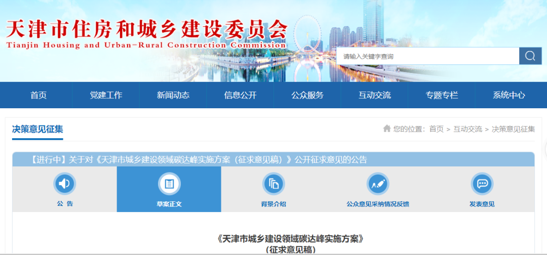 近日,天津市住房和城鄉(xiāng)建設(shè)委員會(huì)發(fā)布《天津市城鄉(xiāng)建設(shè)領(lǐng)域碳達(dá)峰實(shí)施方案》(征求意見稿)。