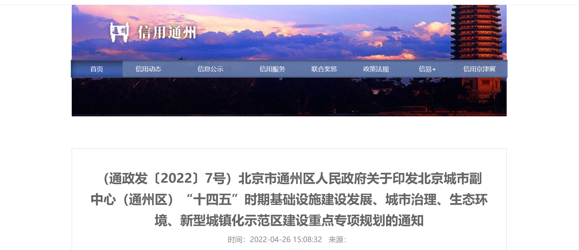近日,北京市通州區(qū)人民政府印發(fā)《北京城市副中心(通州區(qū))“十四五”時期基礎設施建設發(fā)展、城市治理、生態(tài)環(huán)境、新型城鎮(zhèn)化示范區(qū)建設重點專項規(guī)劃》的通知。