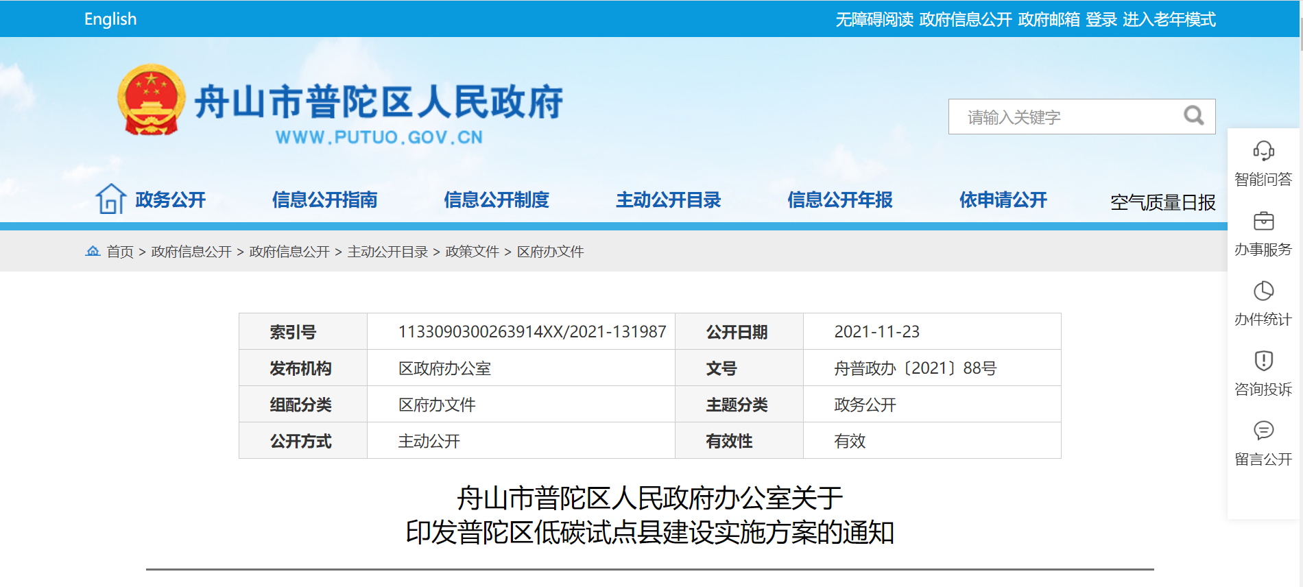 近日,舟山市普陀區(qū)人民政府發(fā)布《舟山市普陀區(qū)人民政府辦公室關(guān)于印發(fā)普陀區(qū)低碳試點(diǎn)縣建設(shè)實(shí)施方案的通知》,通知指出:普陀區(qū)作為浙江省第一批低碳能源發(fā)展類(lèi)試點(diǎn)縣創(chuàng)建單位,擬通過(guò)3-5年創(chuàng)建期,率先實(shí)現(xiàn)碳達(dá)峰與碳中和,全力打造全省能源低碳發(fā)展的“普陀樣板”。