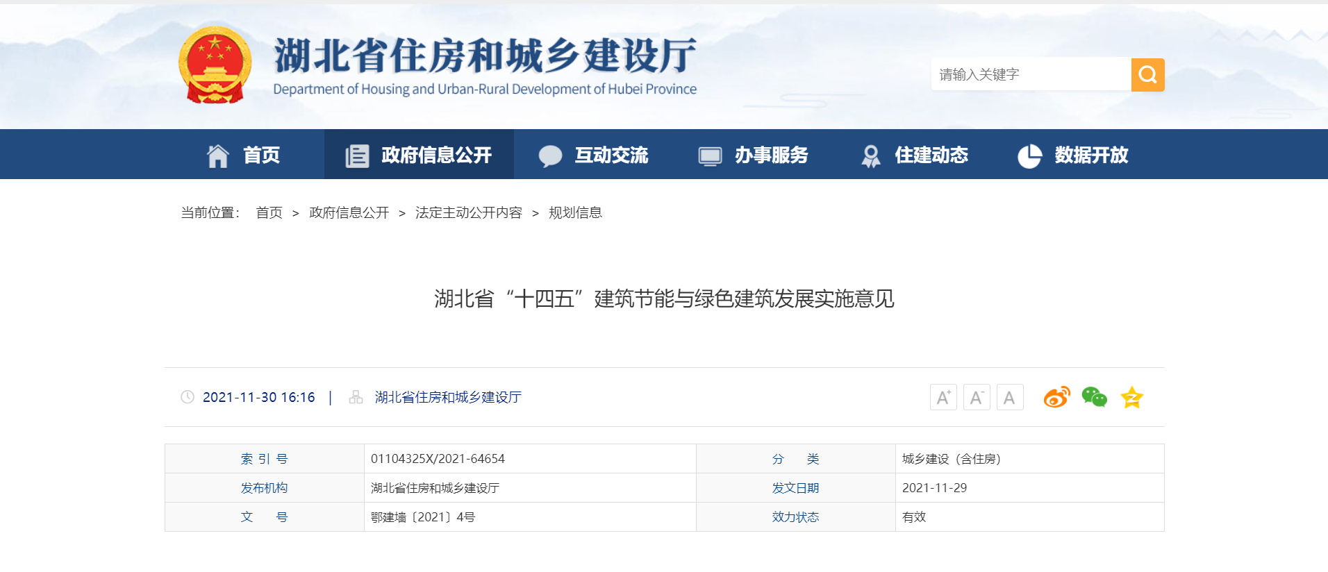 近日,湖北省住房和城鄉(xiāng)建設(shè)廳于印發(fā)湖北省“十四五”建筑節(jié)能與綠色建筑發(fā)展實(shí)施意見(jiàn)。