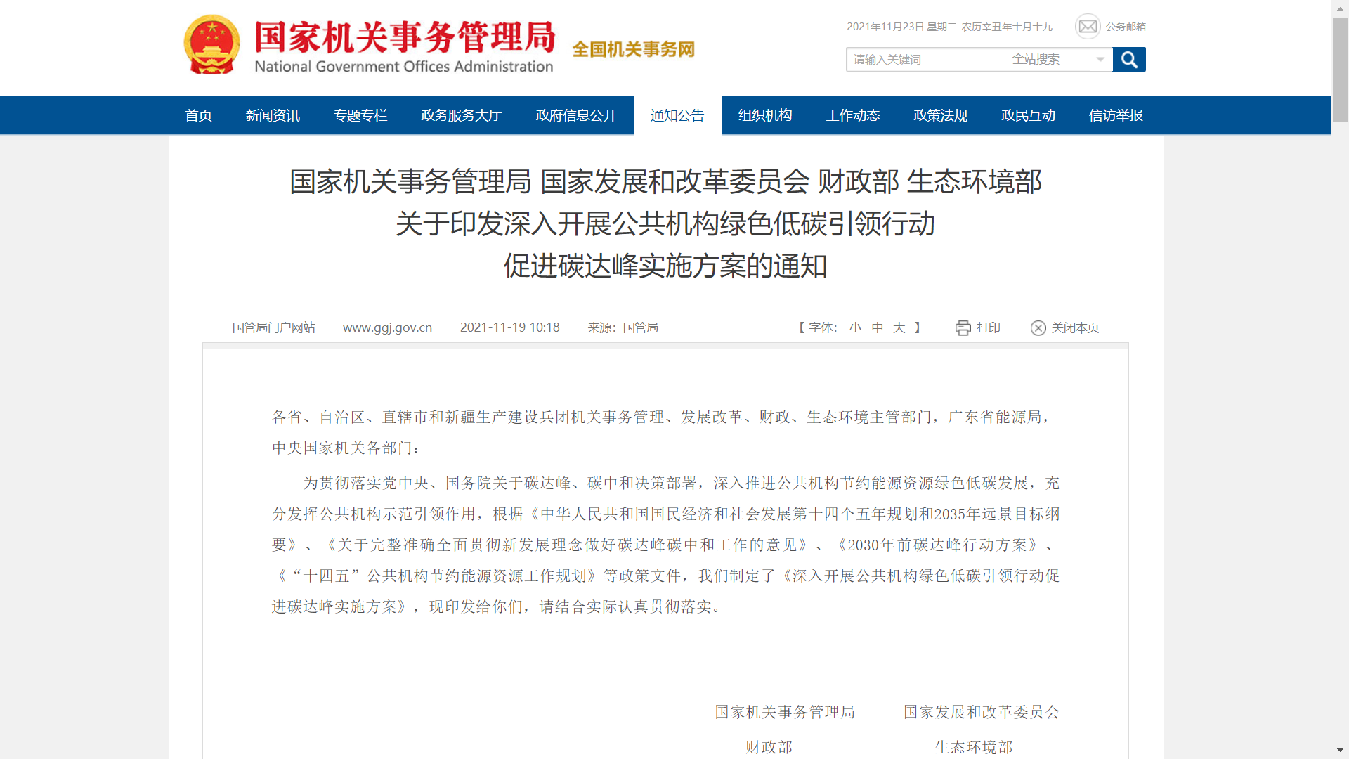 近日,國家機關事務管理局、國家發(fā)展和改革委員會、財政部及生態(tài)環(huán)境部下發(fā)關于深入開展公共機構綠色低碳引領行動促進碳達峰實施方案的通知?!斗桨浮穲猿忠粤暯叫聲r代中國特色社會主義思想為指引,深入貫徹黨的十九大和十九屆二中、三中、四中、五中、六中全會精神,堅決落實黨中央、國務院關于碳達峰、碳中和決策部署,明確了公共機構節(jié)約能源資源綠色低碳發(fā)展的目標和任務。