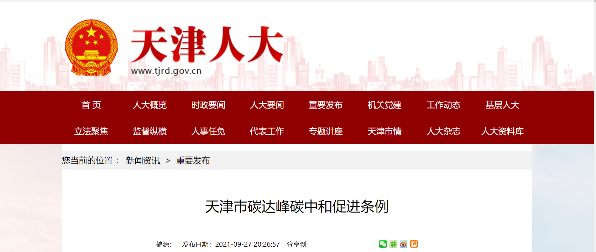 日前,天津市十七屆人大常委會第二十九次會議審議通過了《天津市碳達峰碳中和促進條例》(以下簡稱《條例》),自2021年11月1日起施行。這是全國首部以促進實現(xiàn)碳達峰、碳中和目標為立法主旨的省級地方性法規(guī)。