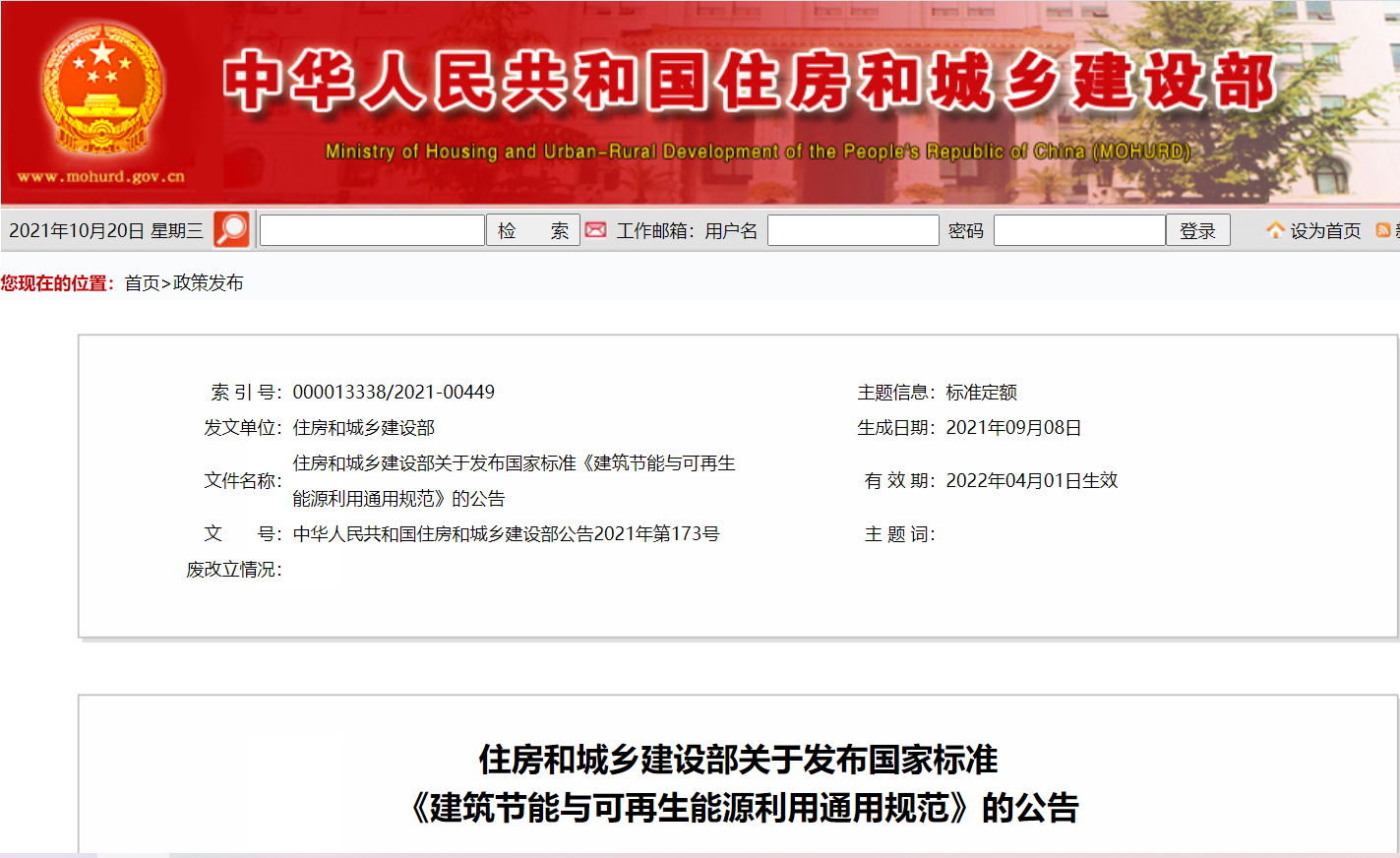 住建部近日發(fā)布公告,批準《建筑節(jié)能與可再生能源利用通用規(guī)范》為國家標準,將于2022年4月1日起實施。