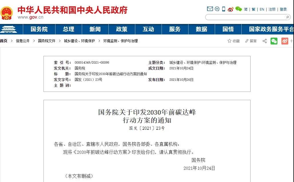 國務院近日印發(fā)《2030年前碳達峰行動方案》,明確將重點實施能源綠色低碳轉(zhuǎn)型行動、節(jié)能降碳增效行動、工業(yè)領域碳達峰行動、城鄉(xiāng)建設碳達峰行動、交通運輸綠色低碳行動、循環(huán)經(jīng)濟助力降碳行動、綠色低碳科技創(chuàng)新行動、碳匯能力鞏固提升行動、綠色低碳全民行動、各地區(qū)梯次有序碳達峰行動等“碳達峰十大行動”。