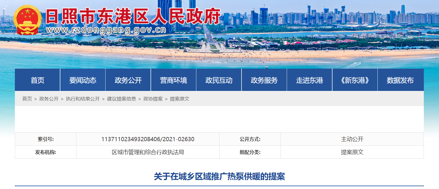 近日,日照市東港區(qū)人民政府發(fā)布《關(guān)于在城鄉(xiāng)區(qū)域推廣熱泵供暖的提案》,全文如下: