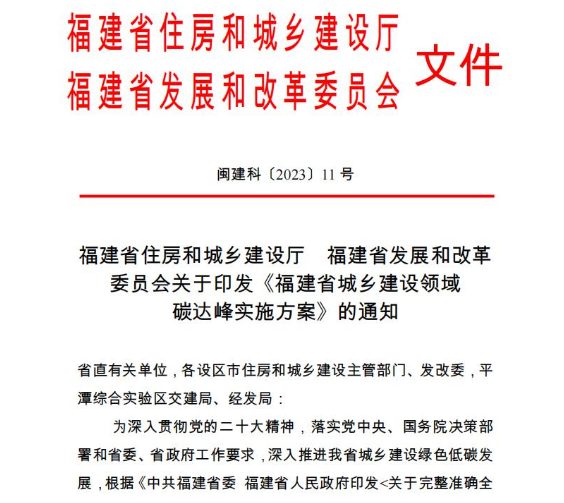 福建省住房和城鄉(xiāng)建設(shè)廳發(fā)布關(guān)于印發(fā)《福建省城鄉(xiāng)建設(shè)領(lǐng)域碳達(dá)峰實施方案》(以下簡稱《方案》)的通知。
